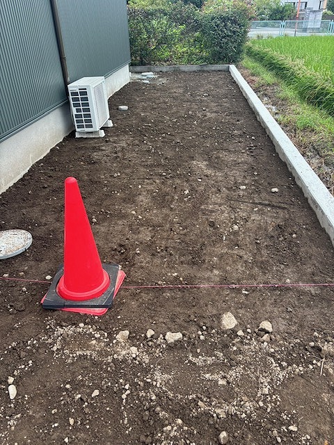 前橋市K様邸工事進捗状況 建物東側の防草シート+6号砕石部分の土の鋤取り・不陸調整を施工しています。 お庭の土が凸凹しているので不陸調整をしました(^^♪ インターロッキングテラスの下地の掘削をしています。 ❁.。.:* […]