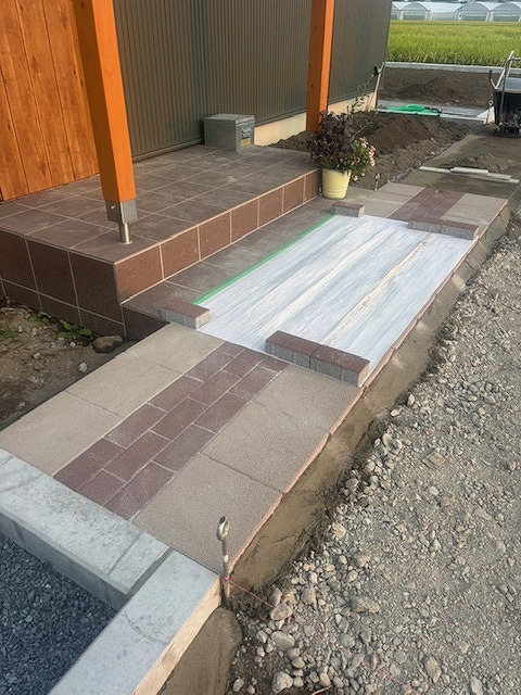 前橋市K様邸外構工事進捗状況 玄関前のアプローチの施工が始まりました! 駐車場の勾配を取る為、階段の1段目がアプローチの床面になります。 エスビックさんのオールラウンドペイブ透水性インターロッキング(TB-1・300角) […]