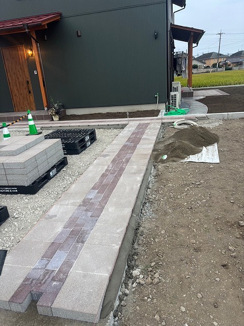 前橋市K様邸外構工事進捗状況 引き続き、アプローチを施工しています。 最後の1個が足りませんでした。 インターロッキングは、エスビックさんの透水性インターロッキング:オールラウンドペイブです(^^)/ 両脇にTB-1/3 […]