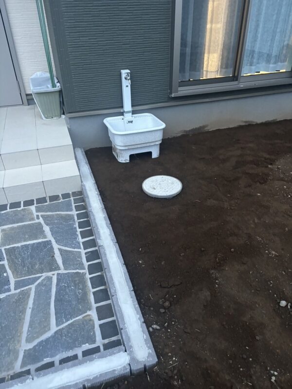 ただ、立水栓の前にある桝は嵩上げ工事が必要になります。