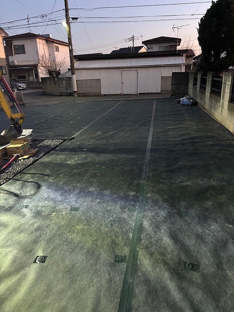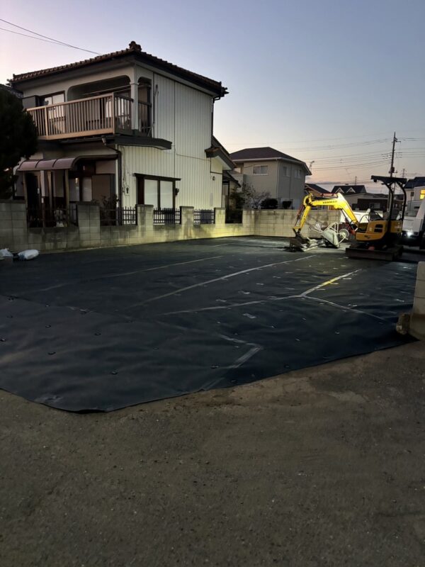 その他のスペースは雑草対策で防草シート:ザバーンを敷きました。
