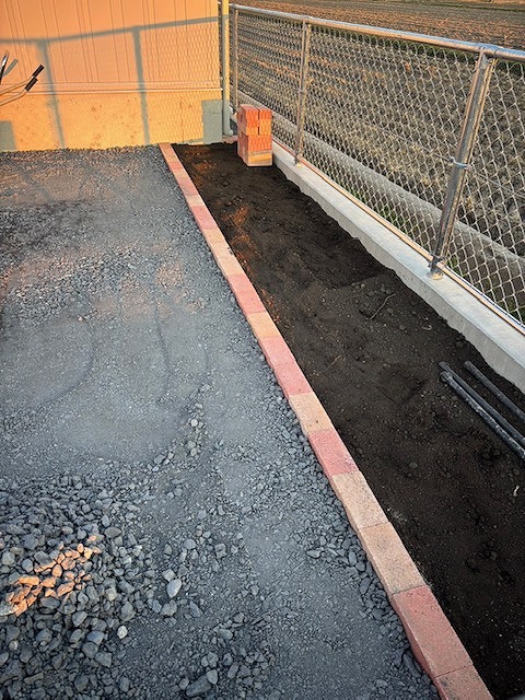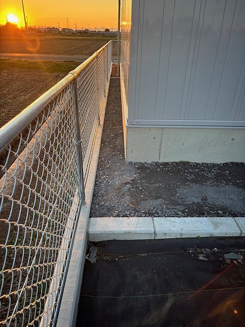ガレージ横のお庭との見切り縁石天端と、既存RC 基礎の天端の高さが違うため既存RC基礎天端に合わせました。