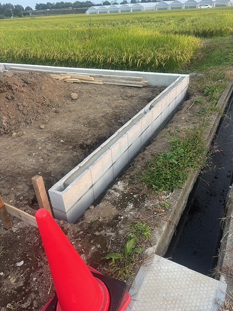 境界RC基礎の天端に合わせてエスビックさんのイージー Cを積んでいます。