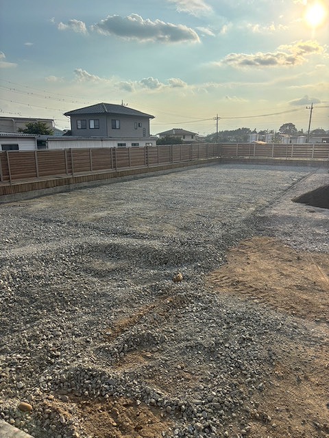 南側のお庭の一部は防草対策の為、防草シート+砂利敷きにします。