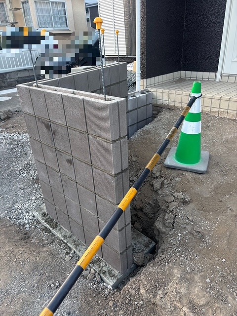 化粧ブロック:スクエアC/エスビックを、根入れを含めて8段積み