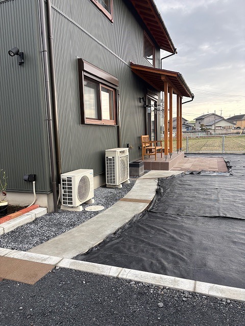 お庭の防草シートは施主様DIYです。防草シート部分は来春芝生を植える予定です(^^♪