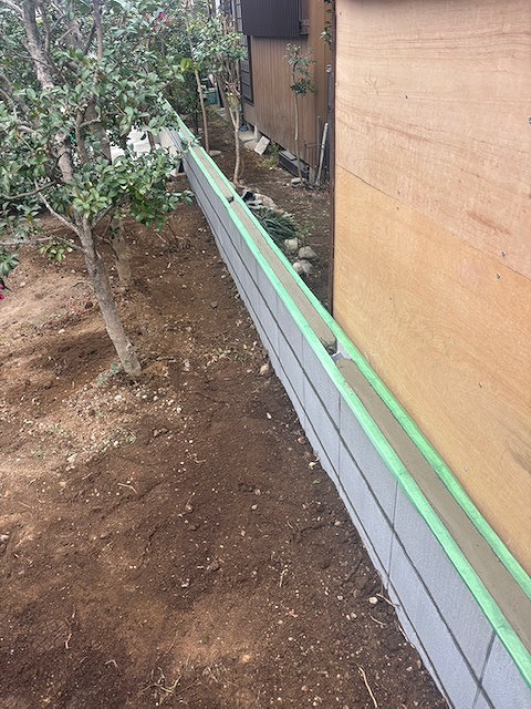 境界ブロック積4段(根入れ含む)が完了しました(^^♪