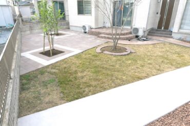 防草対策でお庭を300角のインターロッキング敷きにしました。