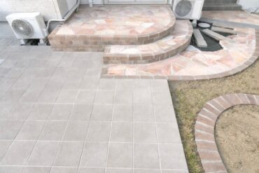 既存テラスをお部屋から段差をなくした使い勝手の良いテラスをレンガと石貼りでリフォームしました。